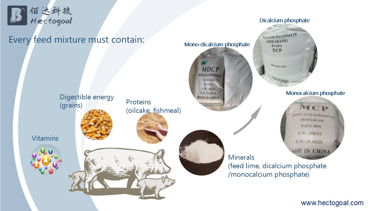- minerals (feed lime, dicalcium phosphate, monocalcium phosphate, mono-dicalcium phosphate)