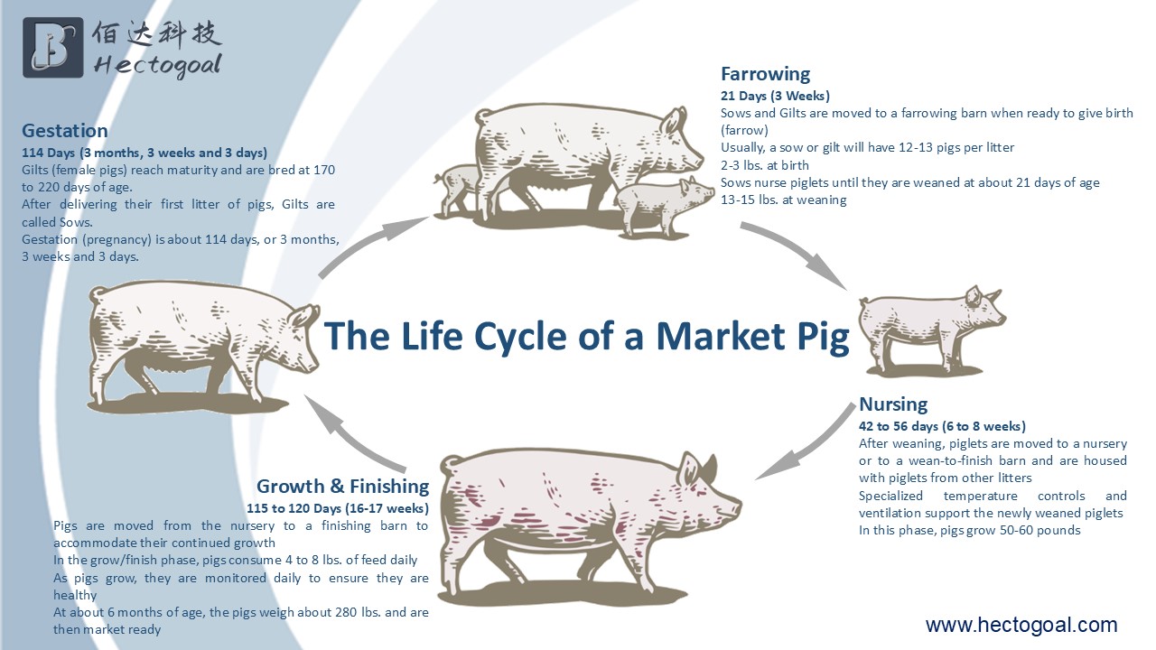 Different stages of pig life cycles:
