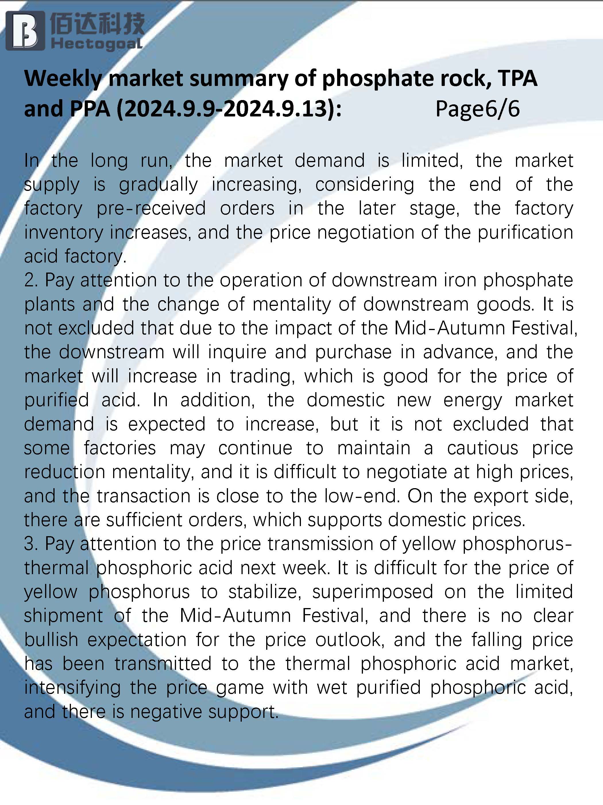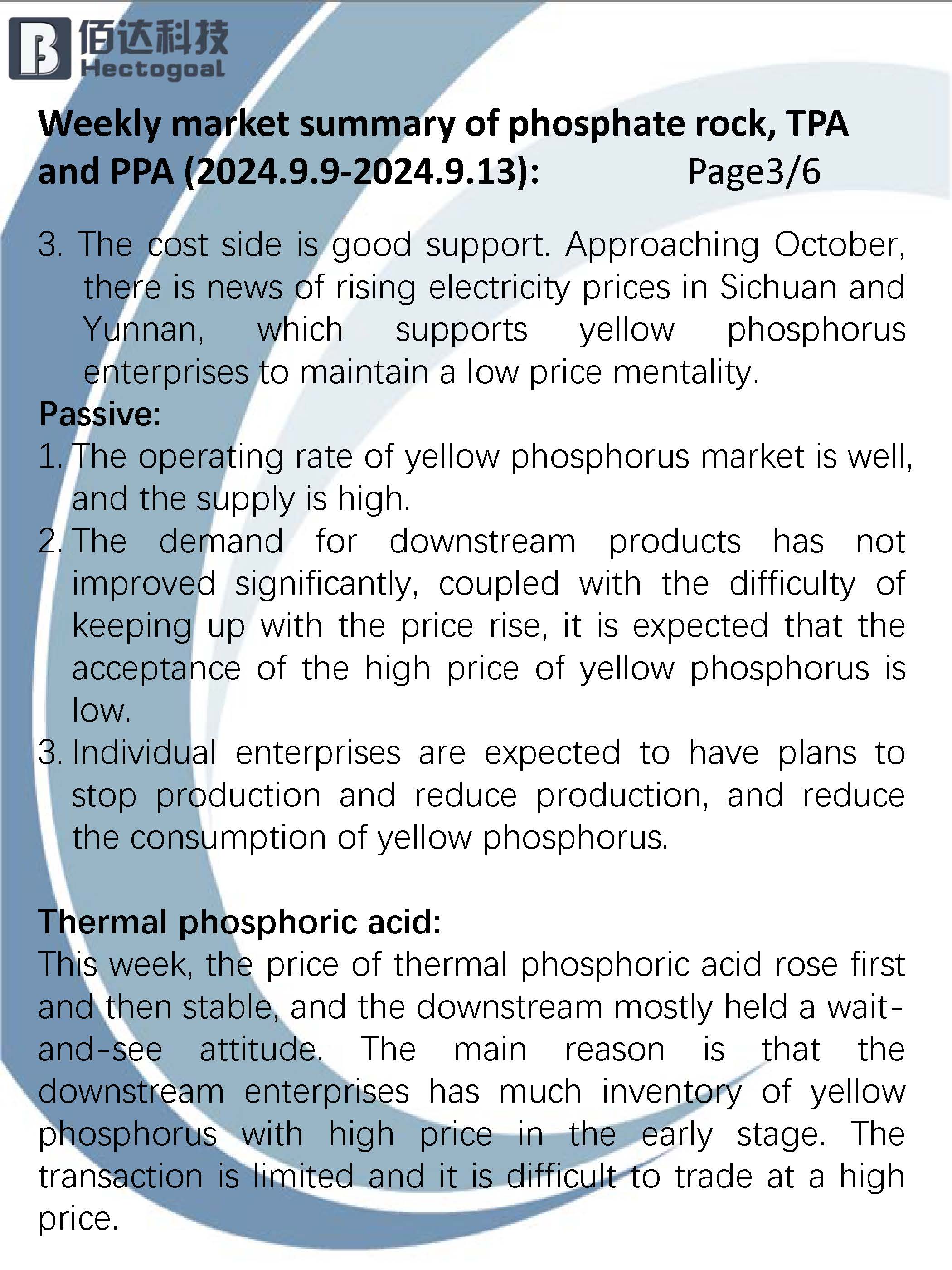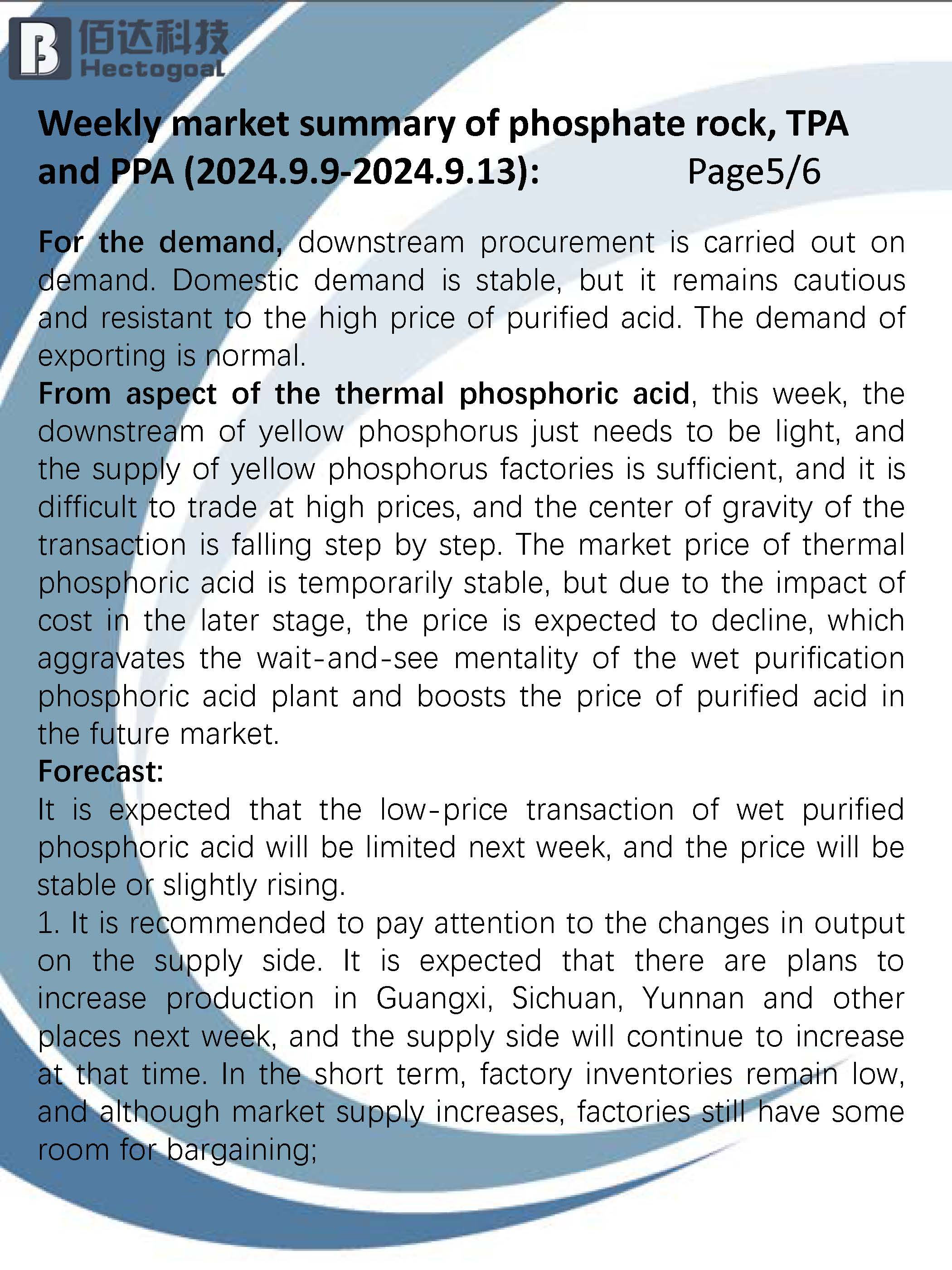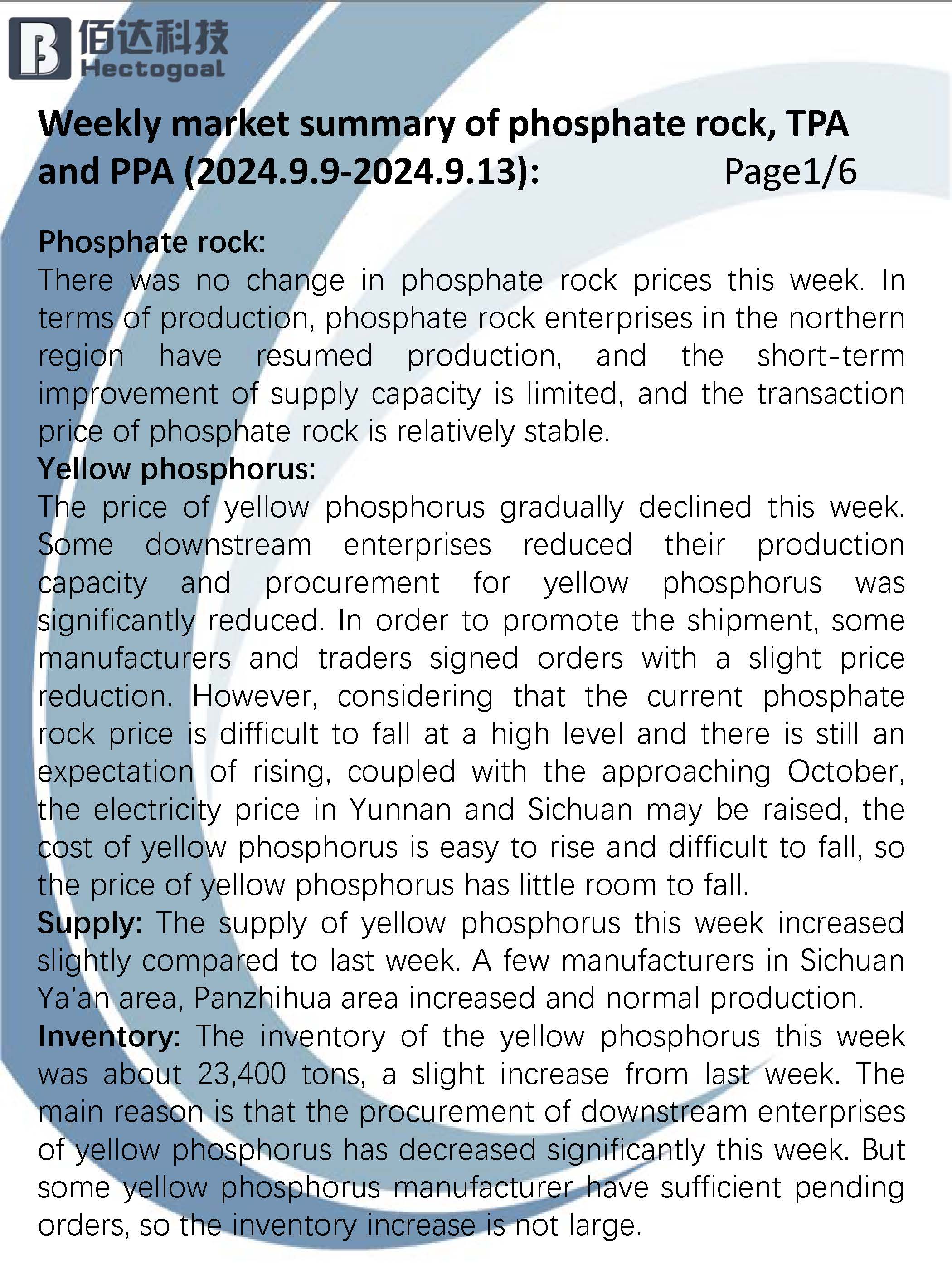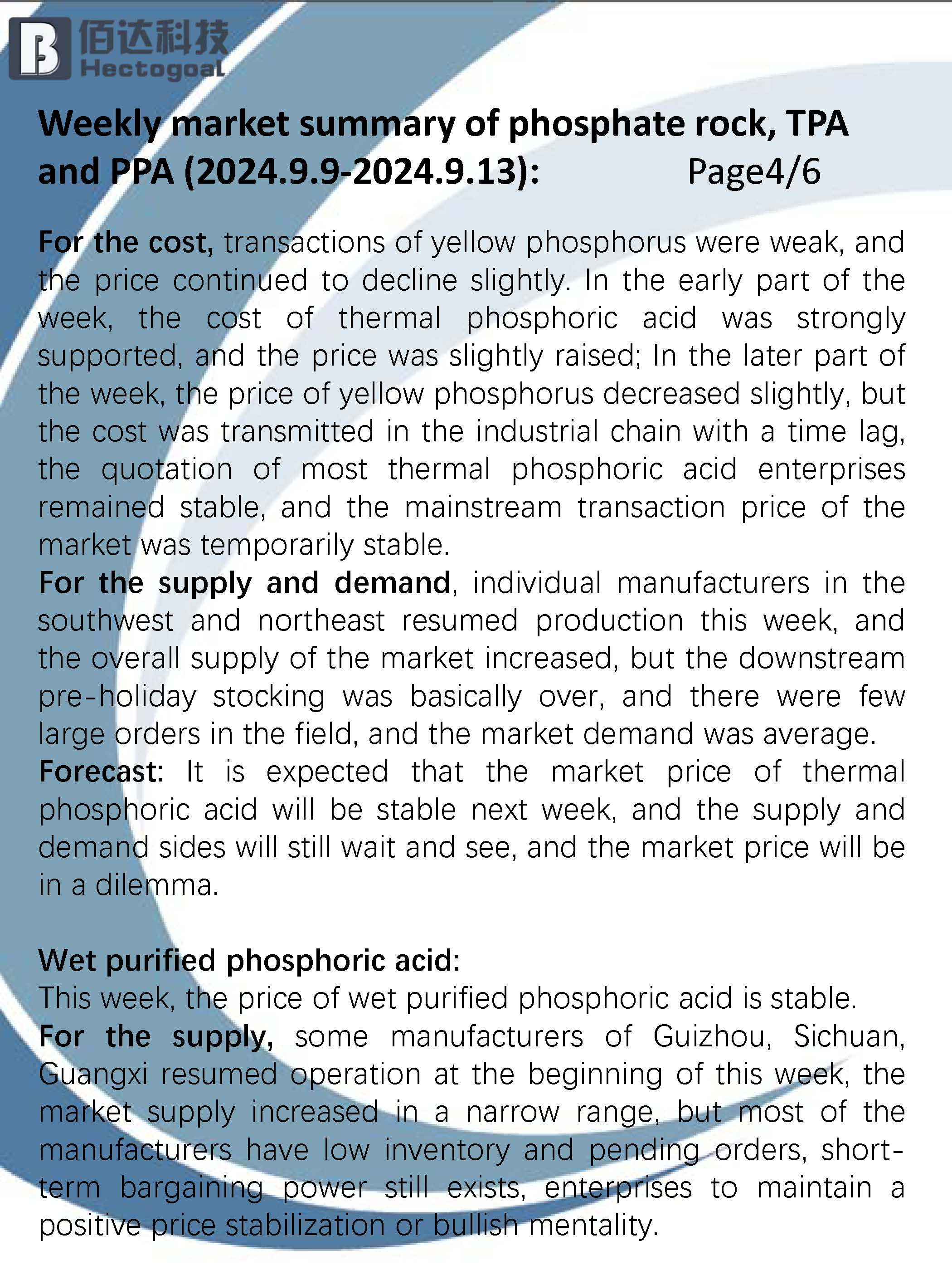 9.9-9.13 Weekly summary of phosphoric acid and raw materials